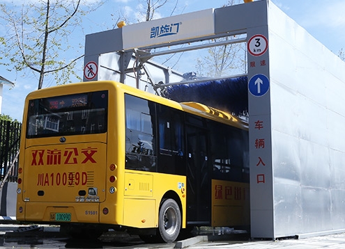 隧道式大巴洗車機原理是將車緩慢從洗車機的入口進,出口出,完成洗車指令。(設備不動,車動)