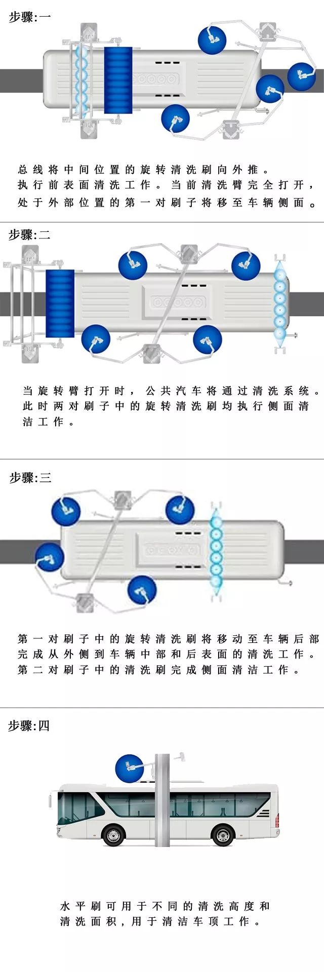 為了讓這張城市名片保持清新靚麗的身影,日常保養工作不容小覷,人工清洗這輛大家伙也不是容易的事,公交公司一般車輛較多,人工清洗費時費力,不少公司采購了我們的大巴洗車設備,讓清洗公交大巴車更加容易,讓這張流動的城市名片更加靚麗多彩